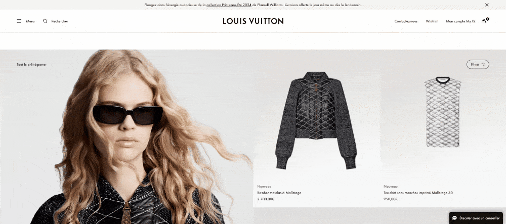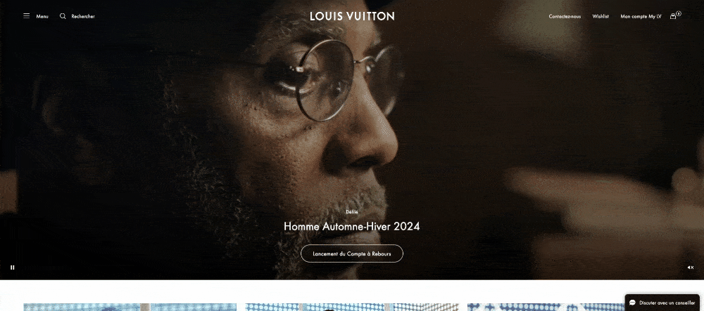 On the Louis Vuitton website, the home page showcase a video that immerse you into the latest collection atmosphere.