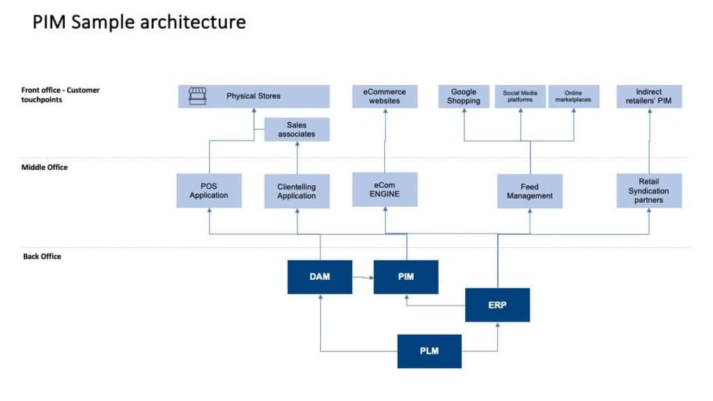 Based on my expertise across several retailers and brands, a PIM may integrate as follow in an IT architecture: